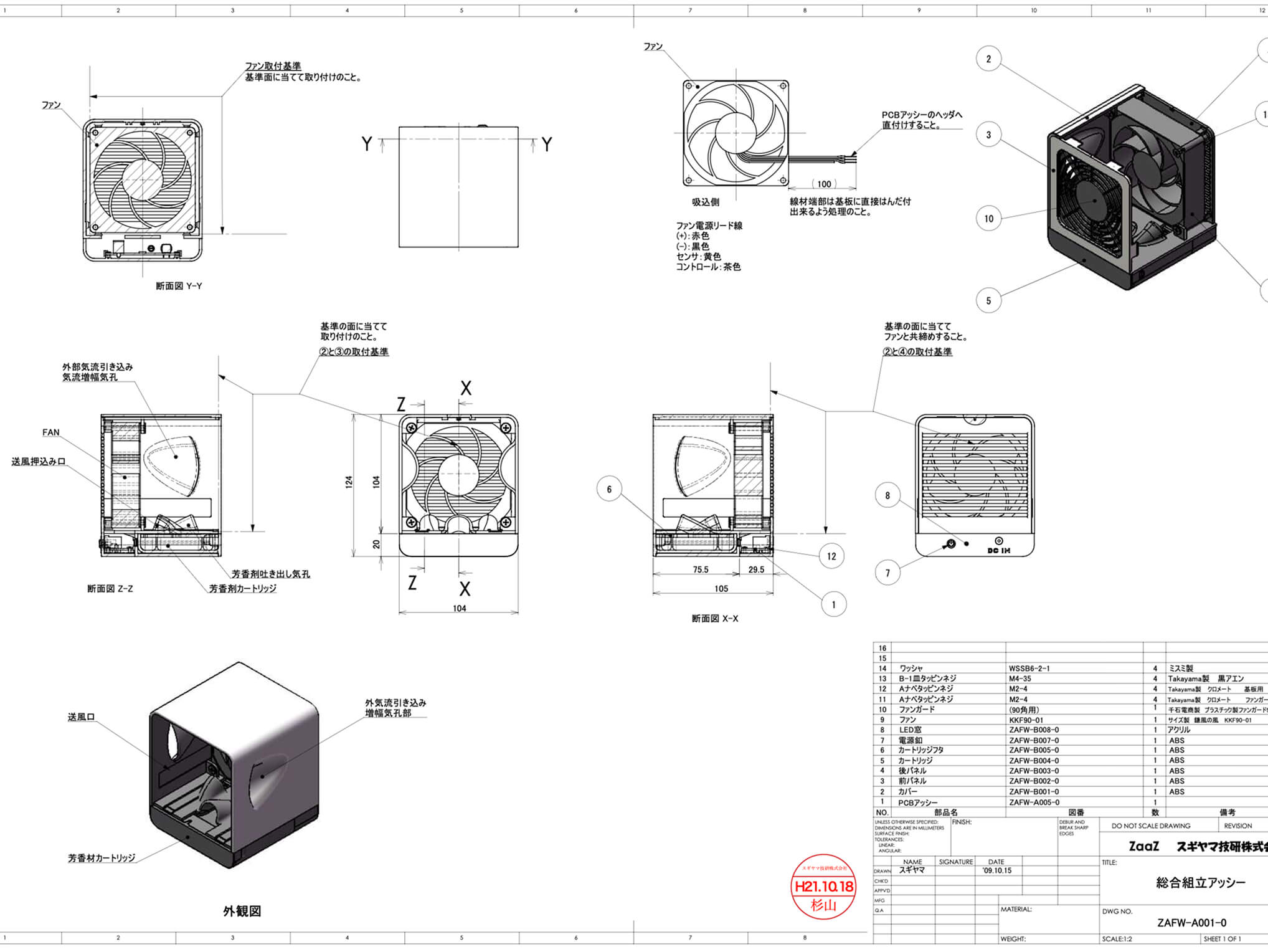 The first model, “ZaaZ one,” was designed to emit scent from product shelves in convenience stores and supermarkets, so it was compact and intended to scent only within a radius of a few meters.